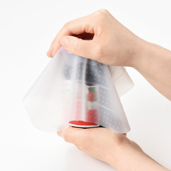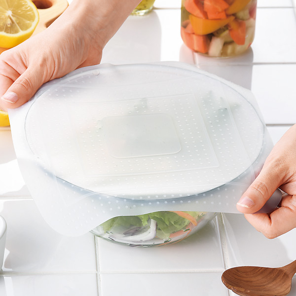 グリッド付きで簡単にセンターを合わすことができ、丸い食器やボウルに被せるさいに便利!