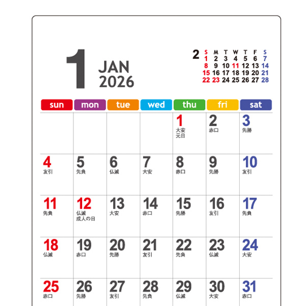 便利なインデックス付き。カラフルで月や曜日が見やすいデザイン。