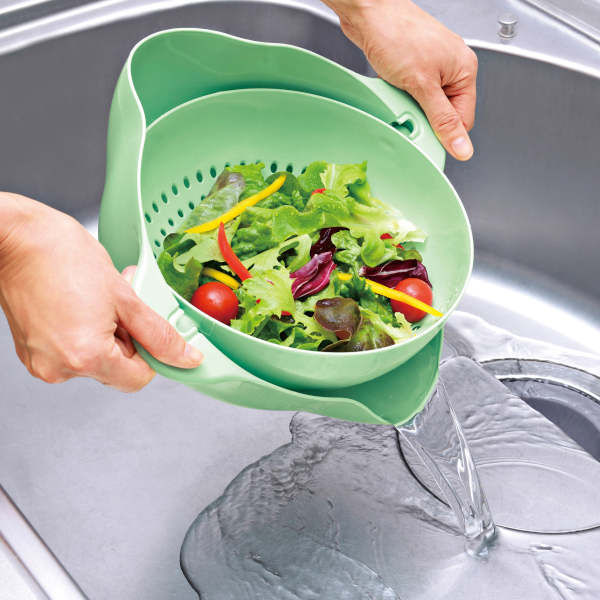 本体を傾けるだけで食材の水洗いや湯切りが簡単にできます。