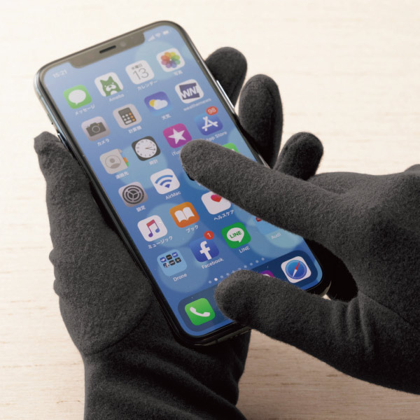 内側は温かい起毛仕立て、人差し指部分でスマホの操作が可能です。