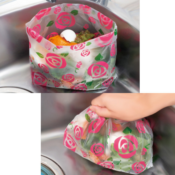 かわいいお花の柄入りで、シンクにおいても自立してくれるから便利にお使いいただけます。