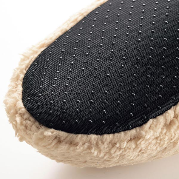 インナーもふんわりボア仕立てで踵からの冷えもしっかりガードします。滑り止め付きです。