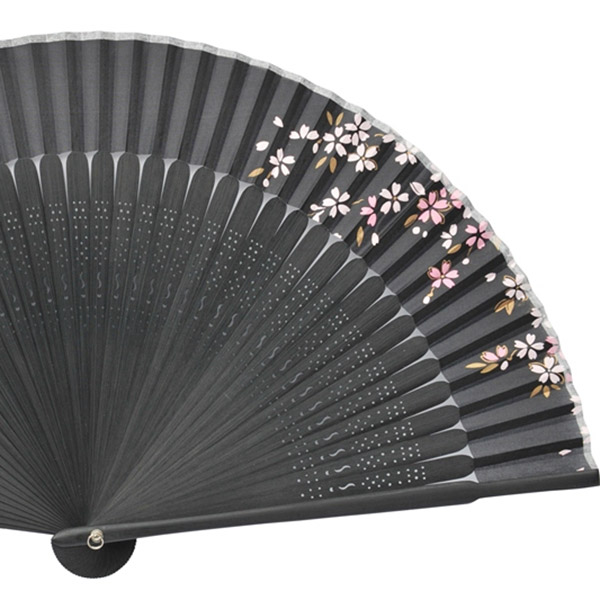 品番:115146 婦人用シルク扇子 酔桜 黒 短地