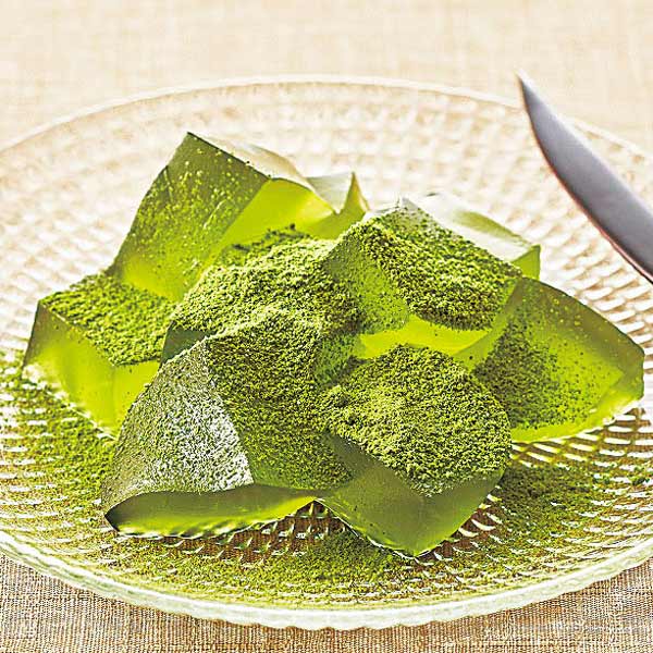 色鮮やかな抹茶わらび餅と、京都宇治抹茶を使ったほんのり苦味のあるきな粉。