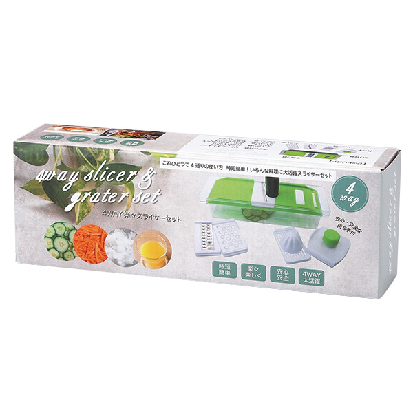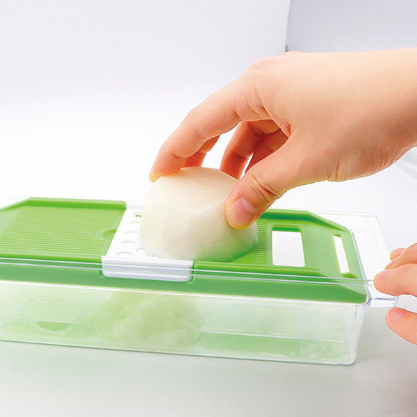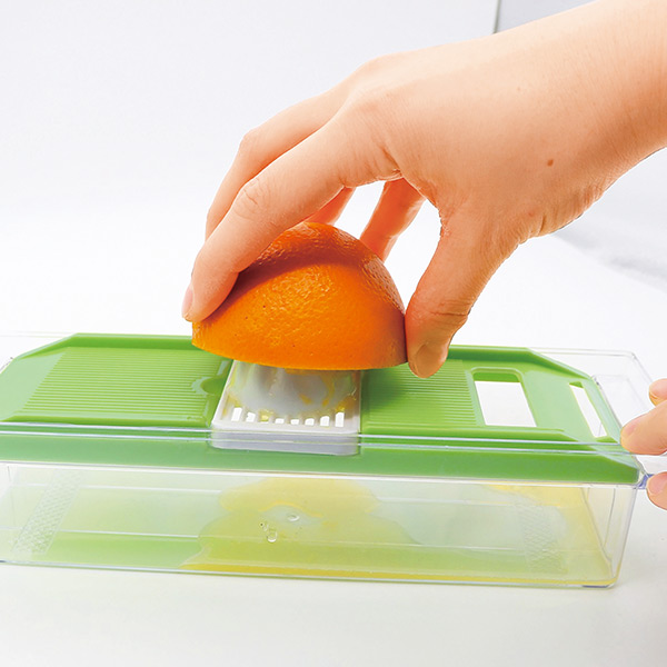 本体、スライサー、千切り器、おろし器、しぼり器、持ち手 各1個