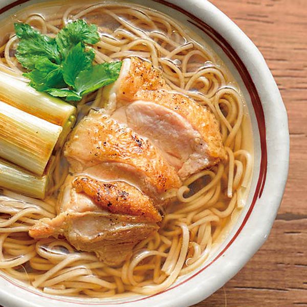 旨みたっぷりの鶏だしつゆ付。和風鶏だしつゆで食べる鶏そばは、全く異なる味わいのコクがあります。
