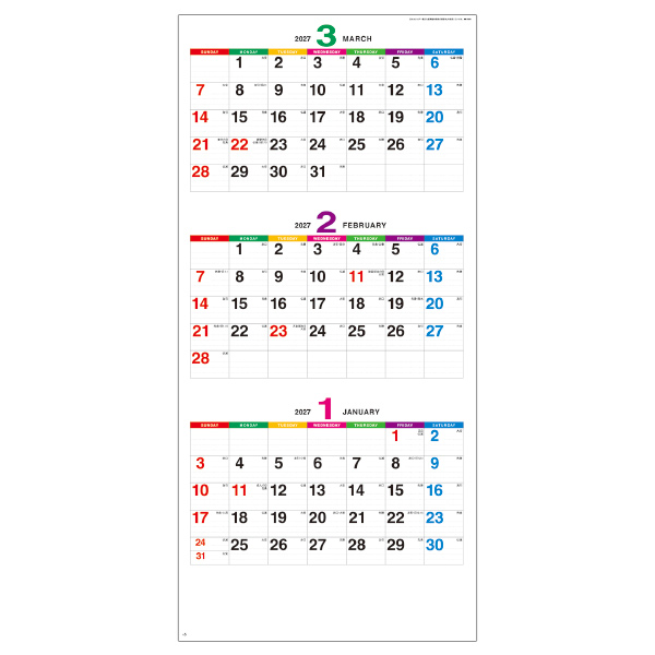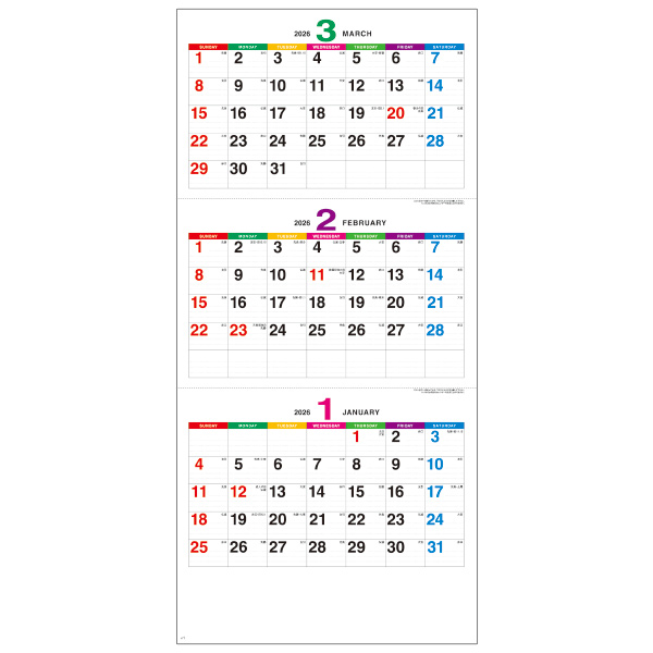品番:118495 壁掛けカレンダー カラーラインメモ(3か月文字 大)