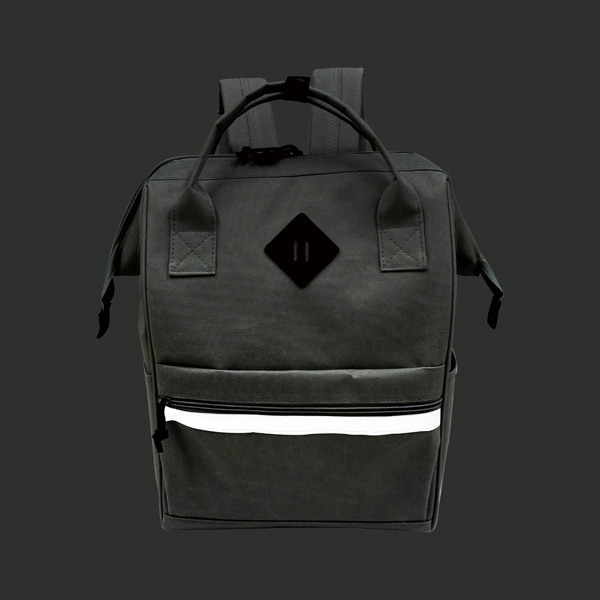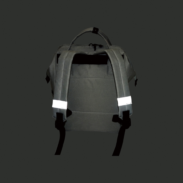 リュックのベルト部分は暗闇で光に反射する反射板も付いており、暗闇でも安全です。