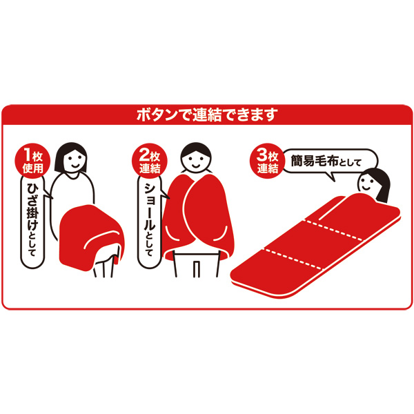 3枚連結では簡易毛布としてご使用いただけます。