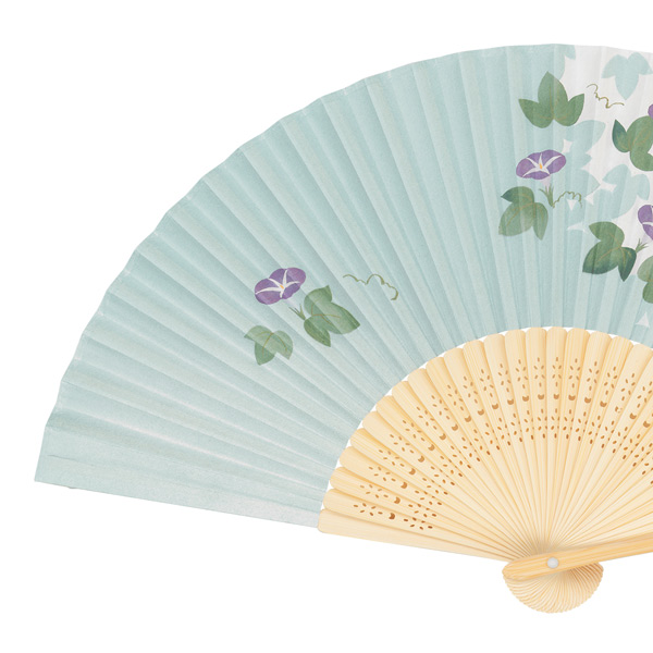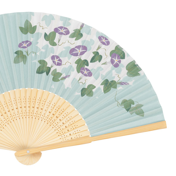 品番:120854 抗菌紙扇子 白竹中彫 朝顔