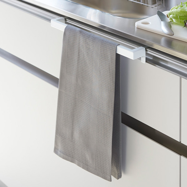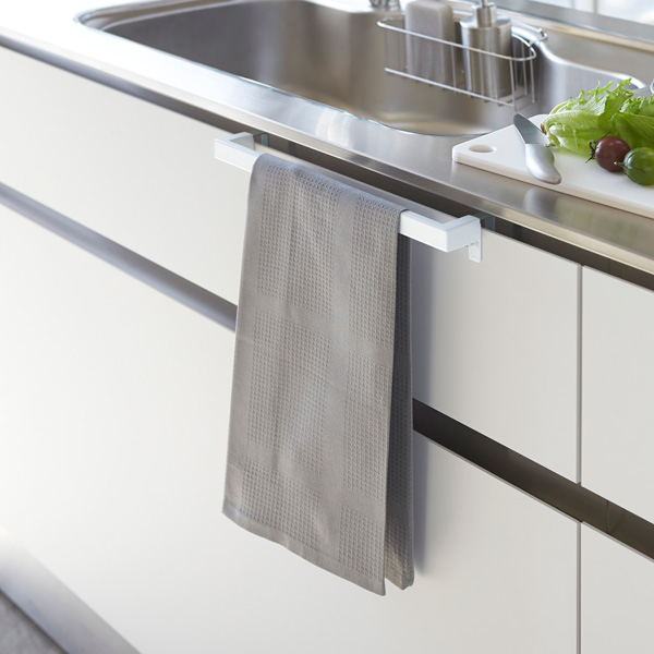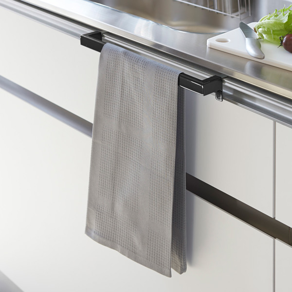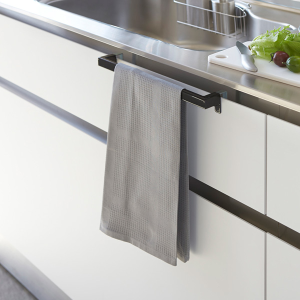 キッチン・洗面所・トイレの扉などにシンプルでスタイリッシュなデザインのタオル掛けです。