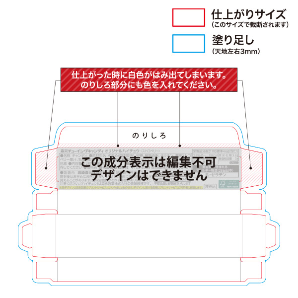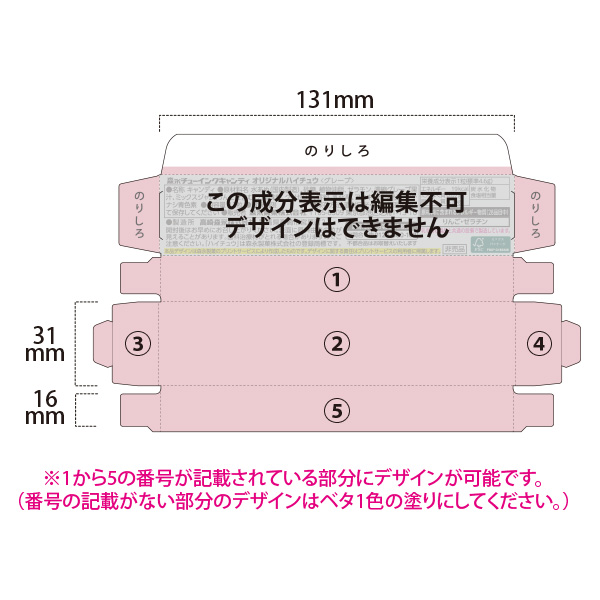 作成例(ハイチュウを入れる外箱にオリジナルデザインが可能!)
