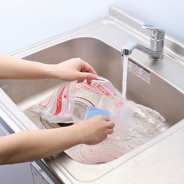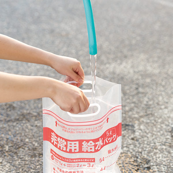中の水を使う際には、ジッパー部分を調整して開閉いただけます。Wジッパー仕様なので水漏れも水害時の持ち出しも安心です。