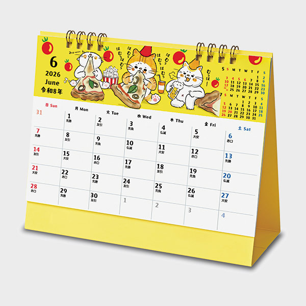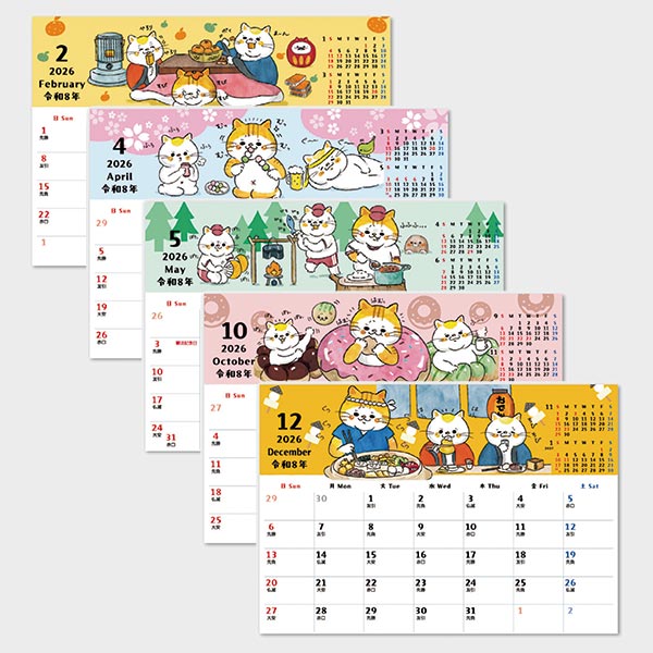 トラ猫「ちゃたろう」とその仲間たちが各月を楽しく彩る卓上カレンダー。