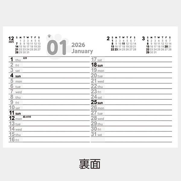 広めのメモスペースと六曜付きでシンプルで使いやすく実用性も抜群です。