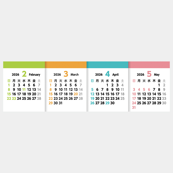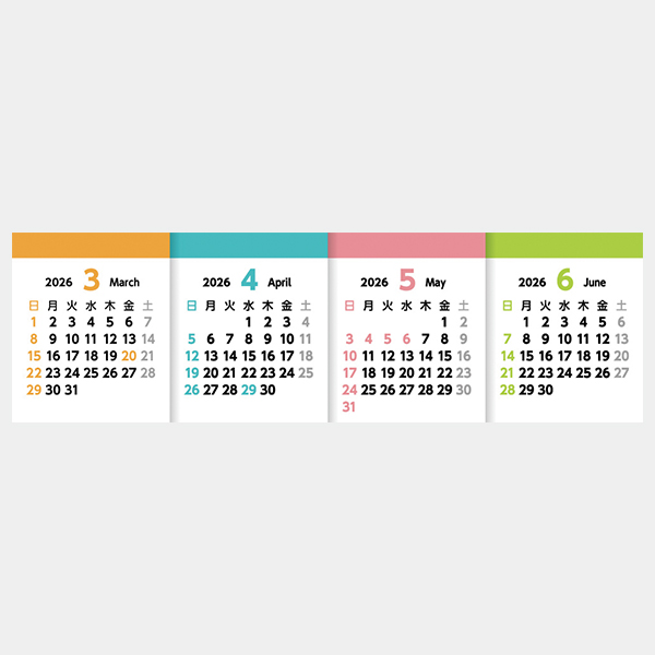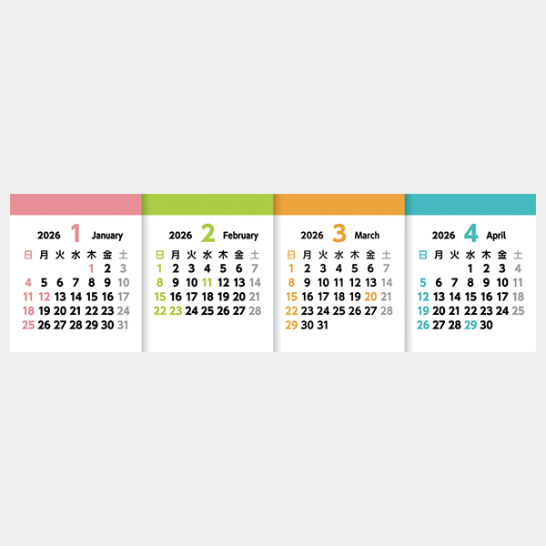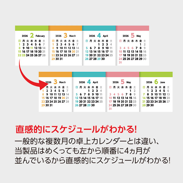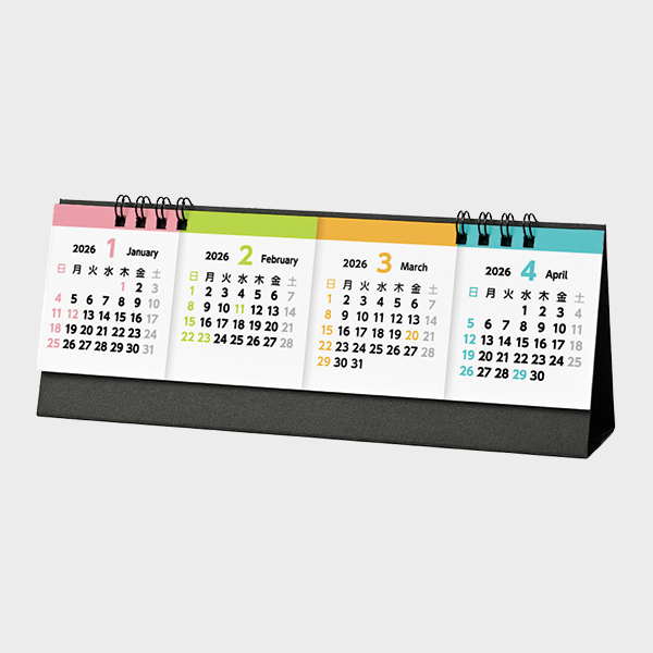 一般的な複数月のカレンダーとは異なり、左から順番に4カ月並んだ設計に!