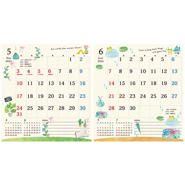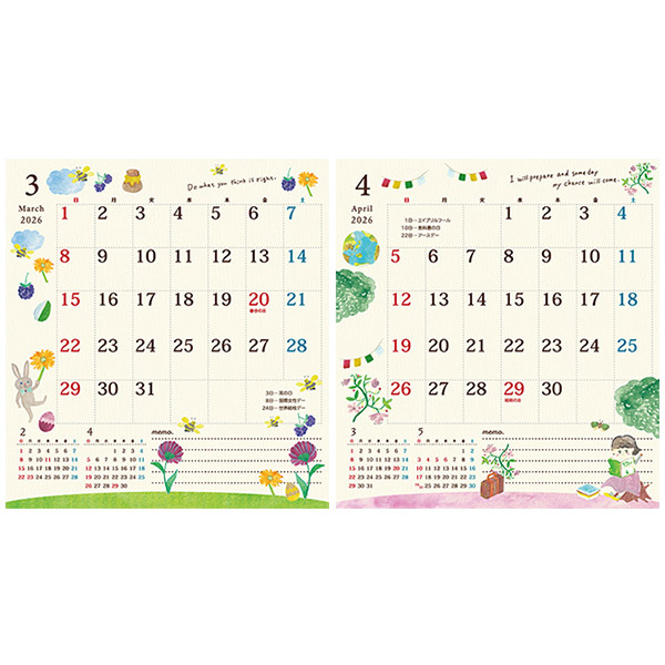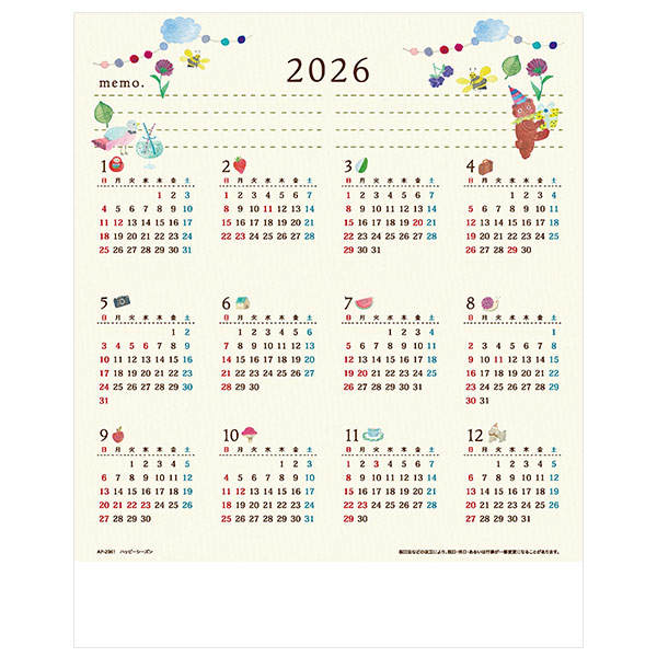 折りたたむとメール便で送れる便利なA4サイズ壁掛けカレンダーです。