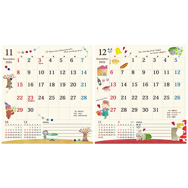 夢の中のものがたりをテーマに小さな村で楽しく暮らす動物とこどもたちの一年をあたたかなタッチで描きました。