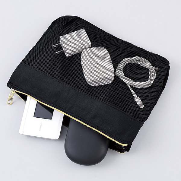 中身が分かりやすいメッシュ素材&4つの収納ポケットでジャンルごとに小物の整理が可能です。