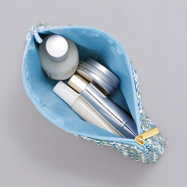 落ち着いたブルーのツイード素材とゴールドのラメのキラキラ感が特別な華やかさを演出します。