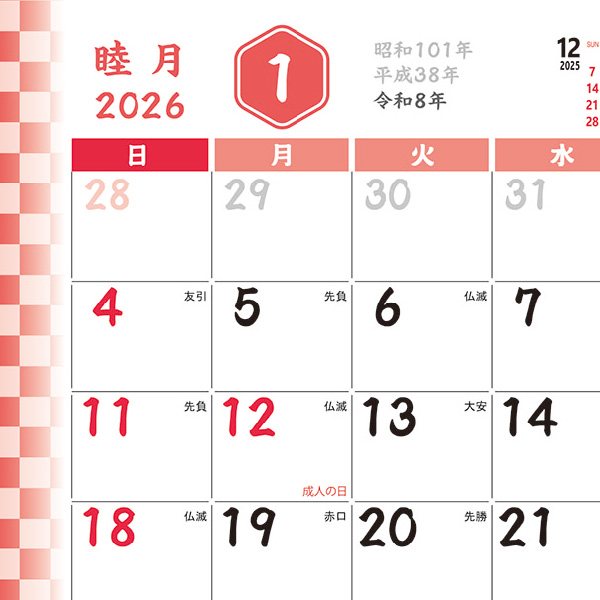 品番:121629 招福縁起 卓上カレンダー(オンデマンド印刷)