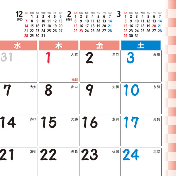上部には前後3ヶ月のカレンダーが記載されているので、先の予定が立てやすくなっています。