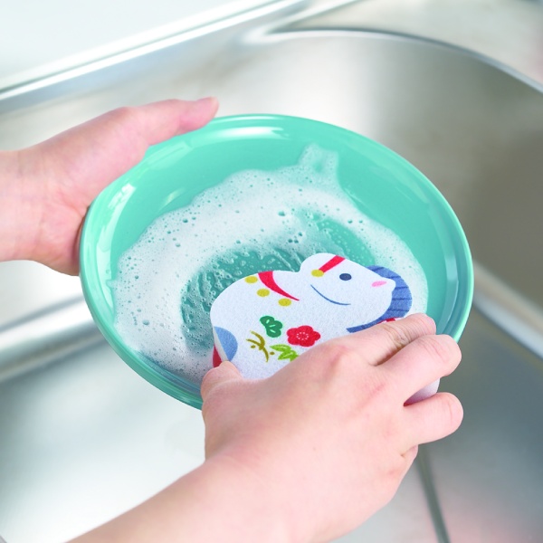 印刷のある不織布面は頑固な汚れに、ポリウレタン面は泡立ちも良く、食器をやさしく洗えます。実用性もバッチリです♪