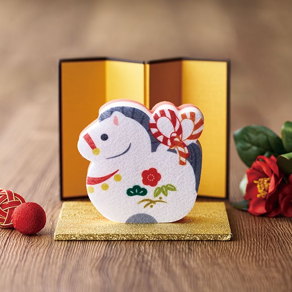 年末年始にぴったりな縁起の良いお手渡し品として、幸運の「白馬」デザインのキッチンスポンジはいかがでしょうか?