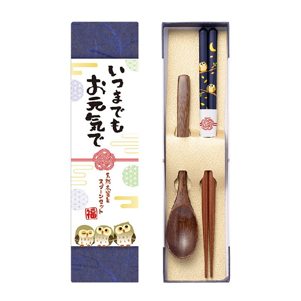 品番:121657 いつまでもお元気で 天然木箸とスプーンセット