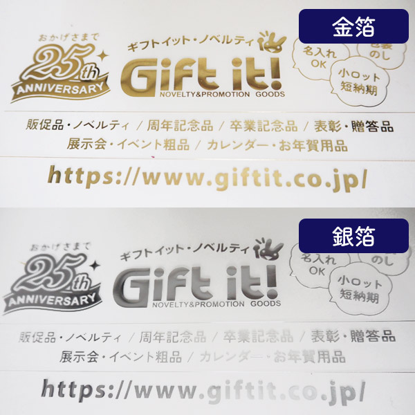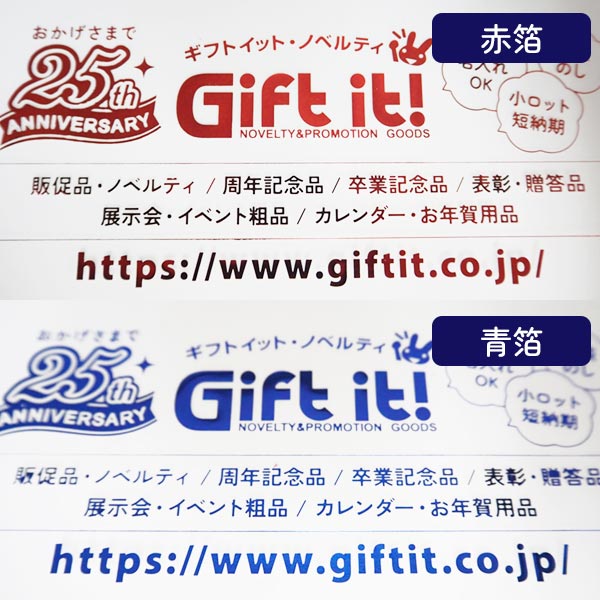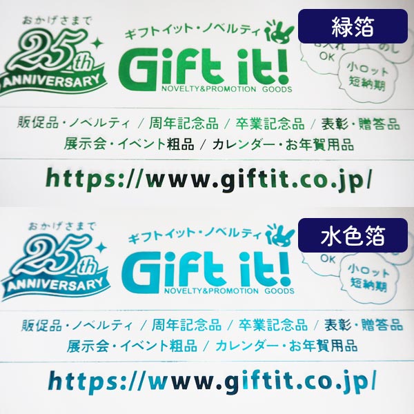 名入れは9色の箔色から、企業カラーやイメージに合わせてお選びいただけます。