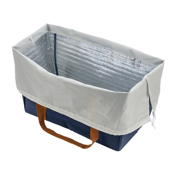 内側はアルミ蒸着加工。夏場のお買い物はもちろん、温かいまま運びたいときにも重宝します。