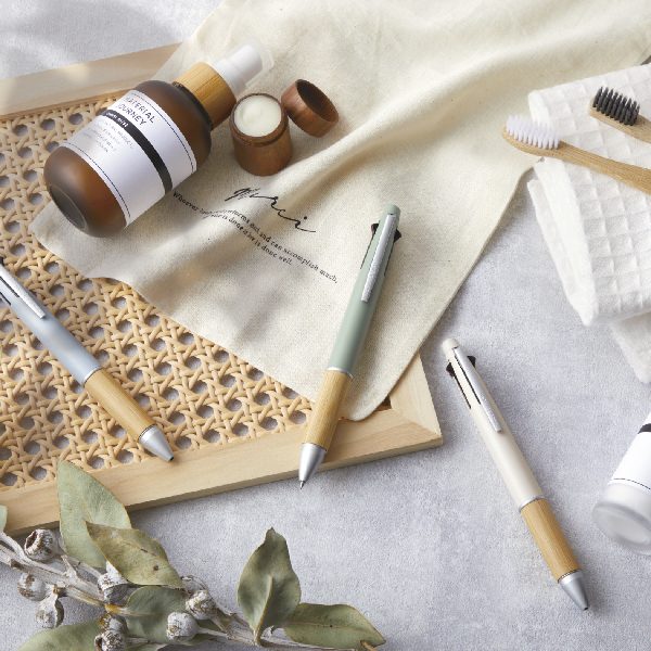 グリップ部に軽やかで美しい天然竹材を採用した日常に優しく溶け込むジェットストリーム多機能ペン。