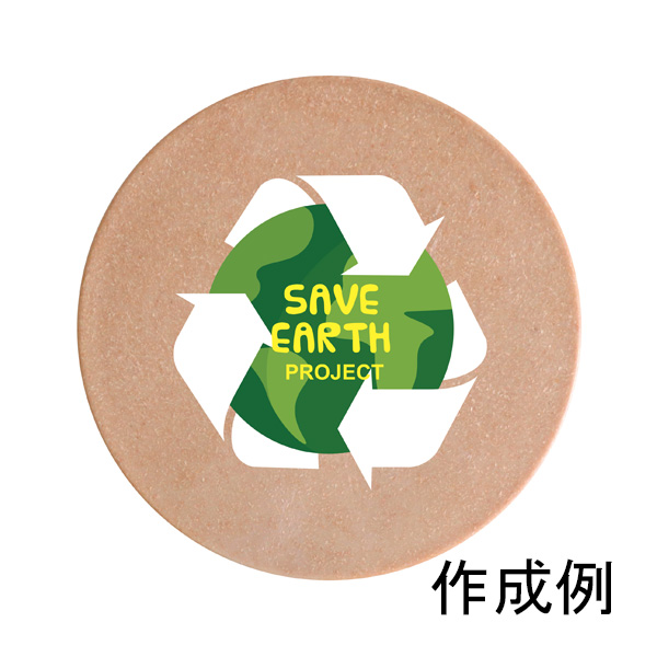 リサイクル素材を使用した木の風合いが特徴の丸型コースター。