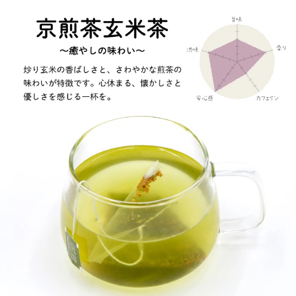 煎茶の風味を活かしながら、煎茶玄米茶のホッとする香りや癒やしをお届けします。