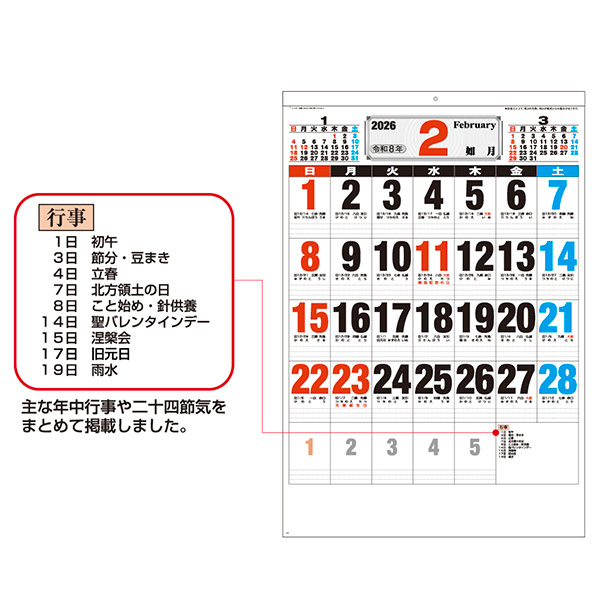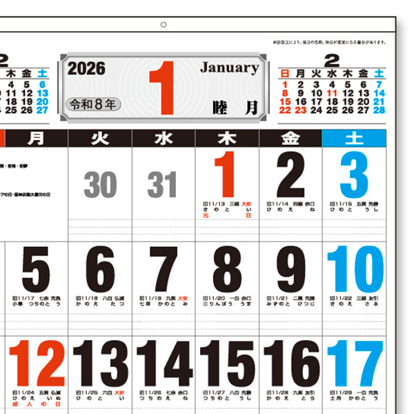 表紙の裏面は便利な年間予定表いなっておりますので、無駄なくお使いいただけます。