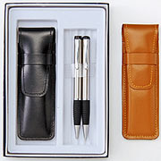 品番:58775 スリム牛革ペンケースギフト メタリックラバー回転