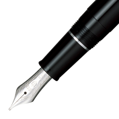 | 材質: | ペン先/14金、ロジウムプレート、中型、蓋・胴・大先/PMMA樹脂(ブラック)、金属部分/ニッケルクロムメッキ仕上げ |
