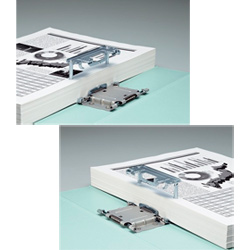 とじ具は金属製。左右どちらからも開閉できる「両開きファイル」です。