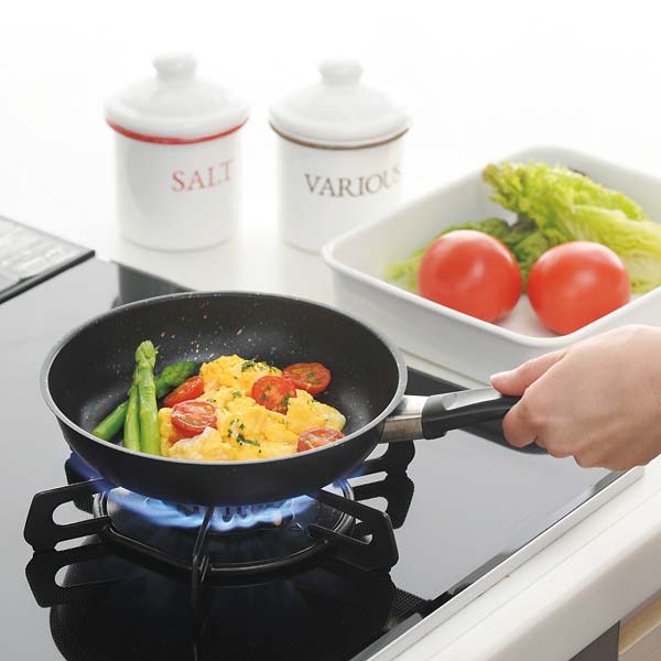 おしゃれな見た目はもちろん、こびりつきにくいからお手入れ簡単!軽くて使い勝手の良い26cmのフライパンです。