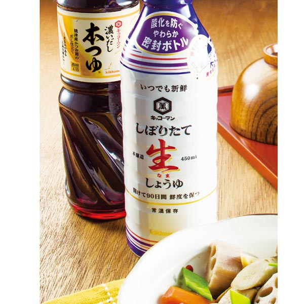 キッコーマンいつでも新鮮しぼりたて生しょうゆ450ml×1本、キッコーマン本つゆ500ml×2本、コンソメ(5g×8袋)×1箱、鶏がらスープ(5g×8袋)×1箱