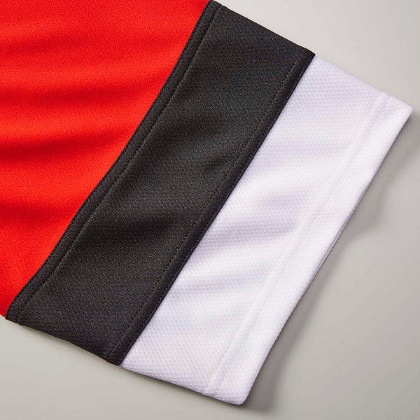 袖口と裾下の配色はメッシュ面を表面に使用しています。ドライ素材でさらっと着こなせるため、スポーツなどにも適しています。