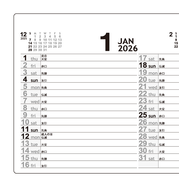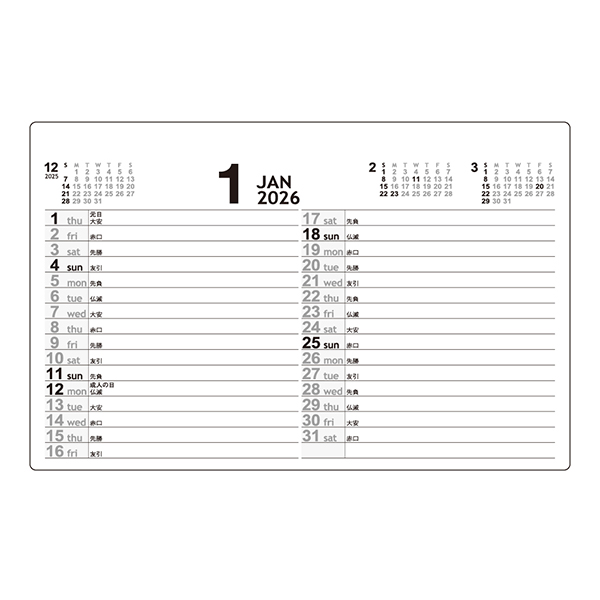 日・祝日はブラックのラインが入ったおしゃれなデザインです。