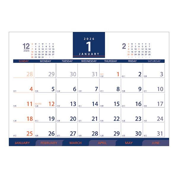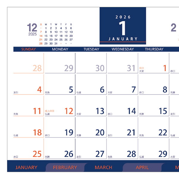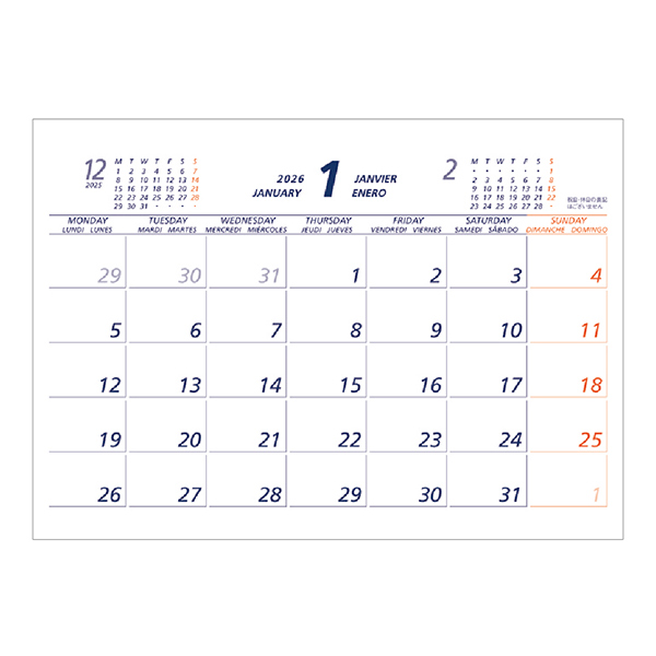 表面は日曜始まり、裏面は月曜始まりになっており、貰った方には使い慣れた仕様を使っていただけます。