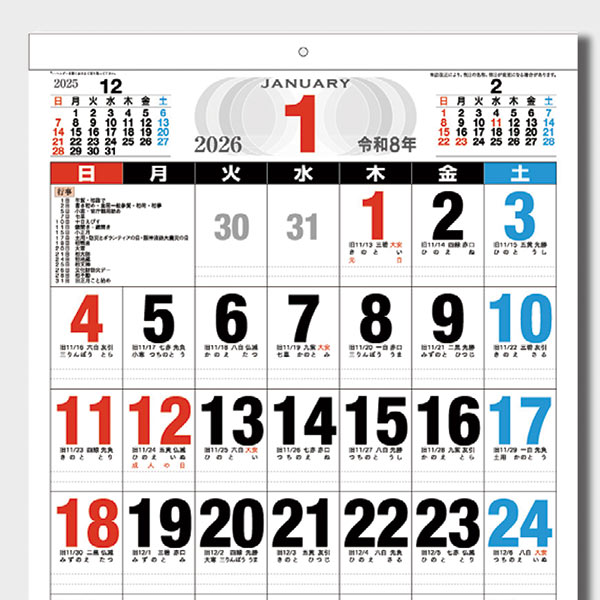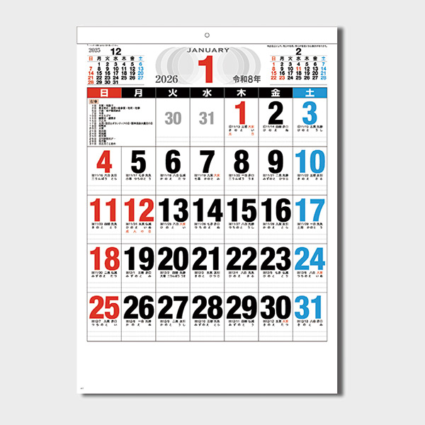 見やすい文字と広いメモスペースが便利な定番の壁掛けカレンダー