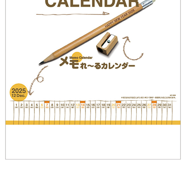 品番:100465 メモれーるカレンダー B4切