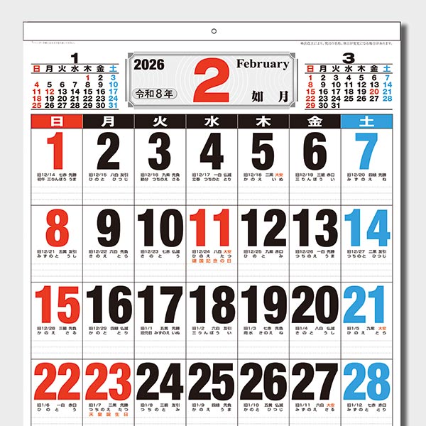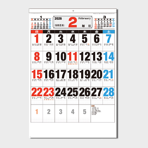広いメモスペースで書き込みやすいジャンボサイズの壁掛けカレンダー