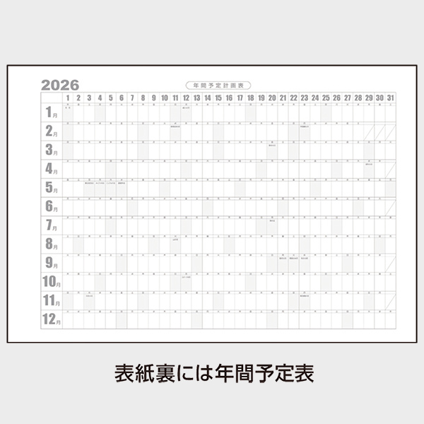 表紙裏面には年間予定計画表があり、1年のスケジュールを確認する事が可能です!