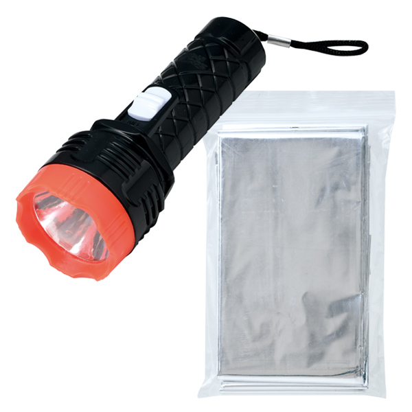 - ■商品サイズ: 袋/約220×170mm、LEDライト/直径約40×105mm、アルミシート/約1300×2100 mm