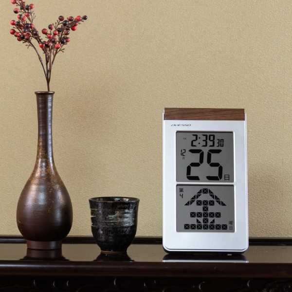 電波時計、日付表示、アラーム・スヌーズ 、第何曜表示、置掛兼用、曜日表示65×65mm
