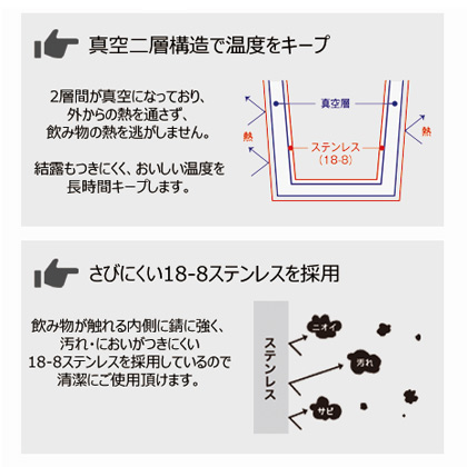 中に入れるドリンクの温度をキープするサーモボトルですので、毎日持ち歩く水筒として重宝します。